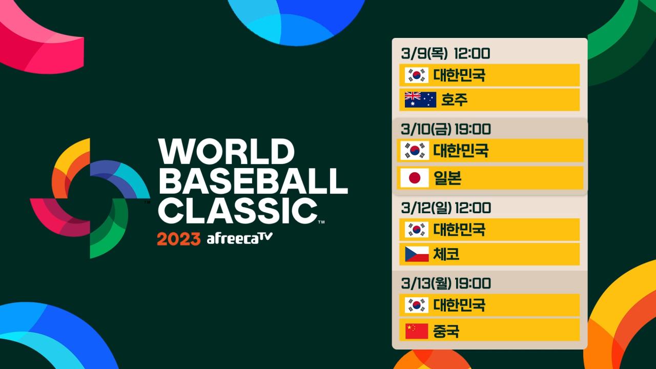 대한민국은 2023년 WBC B조에 편성되었으며 호주, 일본, 중국, 체코와 같은 조에 편성되었어요. 첫 경기는 3월 9일 12시에 에 호주와 조별 리그전으로 국가당 4경기씩 총 10경기를 치르게 돼요.