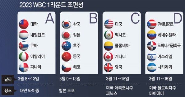 WBC 일정 월드 베이스볼 클래식 조편성 안내
