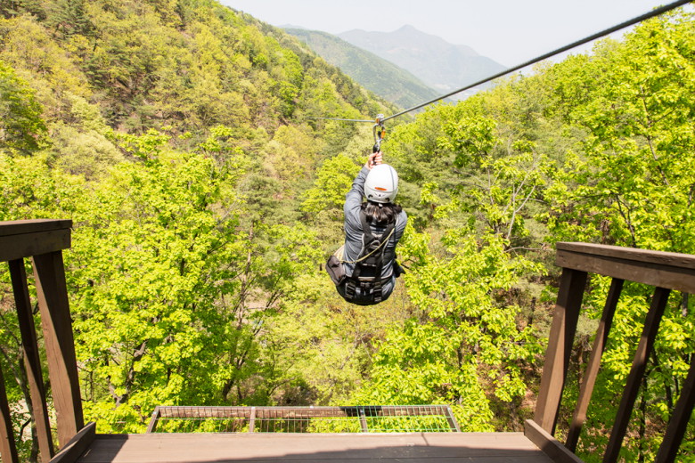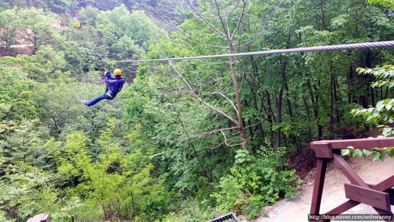 불정자연휴양림이 자리잡은 해발 487미터의 불정산에 9가지 코스의 짚라인이 설치되어 탁트인 산골짜기를 시원하게 즐겨볼 수 있는 곳이라고요. 한두번 잠깐 타고 끝이 아닌 길이 100미터 남짓한 코스를 9번에 걸쳐 진행하며 문경 산새와 전경을 감상할 수 있어 많은 사람들이 문경 관광 중 한번 정도는 확인할만한 곳으로 강력하게 권장드려요.