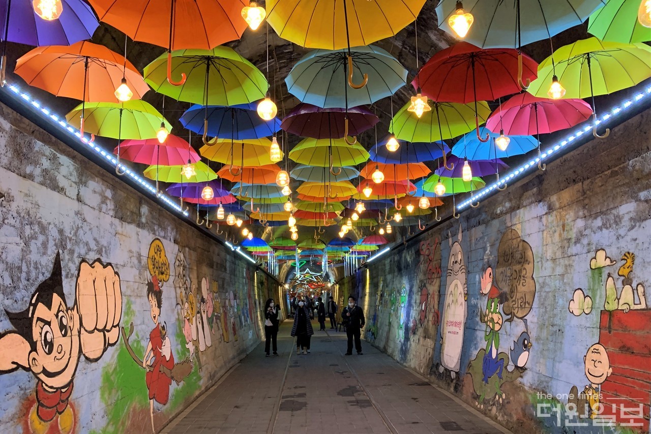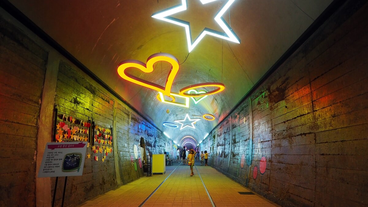 문경 오미자 터널은 지역의 특산물인 오미자를 홍보하고 판매하며 문화공간을 전달하는 목적으로 만들었다고 해요. 이 터널 안에서 와인을 시식할 수도 있으며 구매할 수도 있어요. 전체 길이는 540m로 짧은 편인데, 사진이 예쁘게 나와서 반드시 한 번 내원하는 걸 권장해요. 여름에는 시원하고 겨울에는 따뜻한 터널 안에 여기저기 조명들로 꾸며놨습니다.