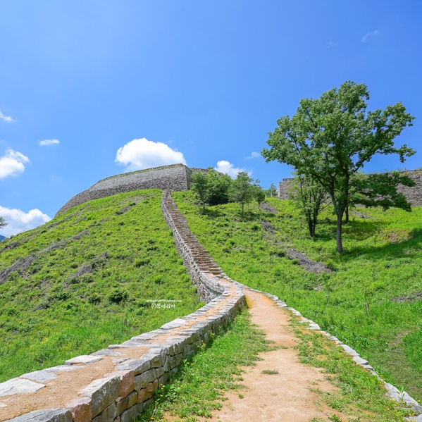 문경시 마성면 신현리 고모산에는 삼국시대에 축조된 고모산성이 있어요다. ‘경북팔경’의 제1경으로 꼽히는 진남교반이 내려다보이는 천연요새로 문경 가볼만한곳 베스트 10 이라고 합니다. 숲 여행의 최초로 은 고모산성 꿀떡고개이고 꿀떡고개로 들어서면 큼지막한 느티나무 아래 성황당이 있어요.
