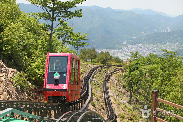 문경의 단산모노레일은 백두대간을 둘러볼 수 있는 왕복 3.6km 길이의 모노레일이라고 합니다. 모노레일의 정상에서는 패러 글라이딩을 타는 장소이기도 하며 포토존 및 드넓은 백두대간의 모습을 바라볼 수 있습니다. 물론 패러글라이딩은 밑에서 따로 차를 타고 이동하며 근처에는 집라인도 있으니 구경거리 및 레포츠 체험으론 딱 좋은 장소이기도 해요.