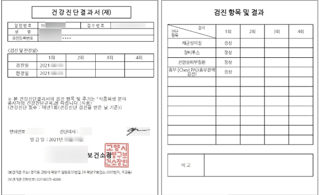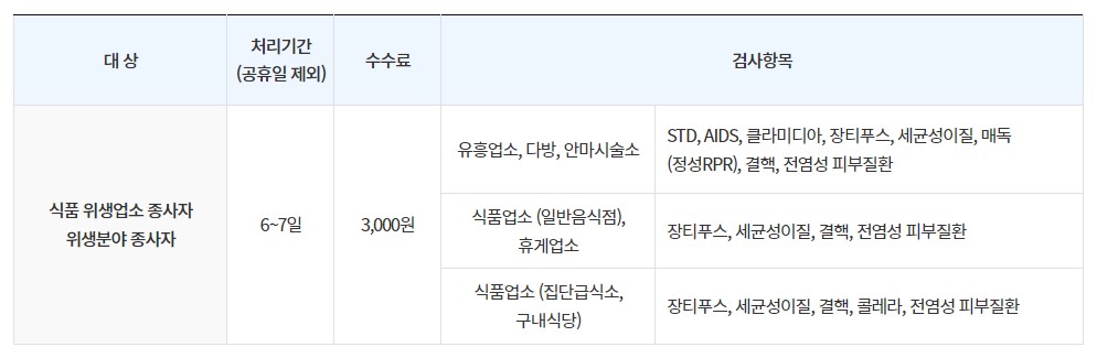 참고사항으로 유흥업소의 경우에는 결핵과 에이즈 검사를 추가로 받게 돼요.