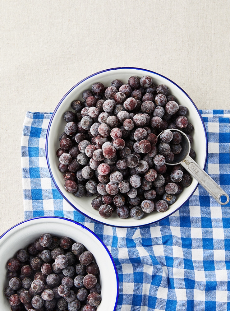 수확 전 약간 조금 익은 상태에선 확실히 파란색에 가깝긴 한데 익어서 수확되는 것들과 냉동들은 죄다어두운 남보라색에서 검은색을 가지고 있어요.