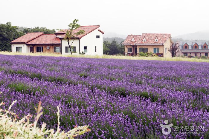 라벤더들이 일제히 보라색 꽃망울을 터뜨리면 장관이 따로 없어요. 보라색 카펫을 깔아놓은 듯한 라벤더 밭 한편에는 호밀과 양귀비꽃이 부락을 이루고 있으며 페인트칠 발자취가 그대로 남은 외벽이 배경과 잘 조화가 되어서 감미로운 포토샷 명소가 되는 곳이라고 합니다. 마치 유럽의 어느 시골 마을에 온 듯한 느낌이 드는 곳이예요.