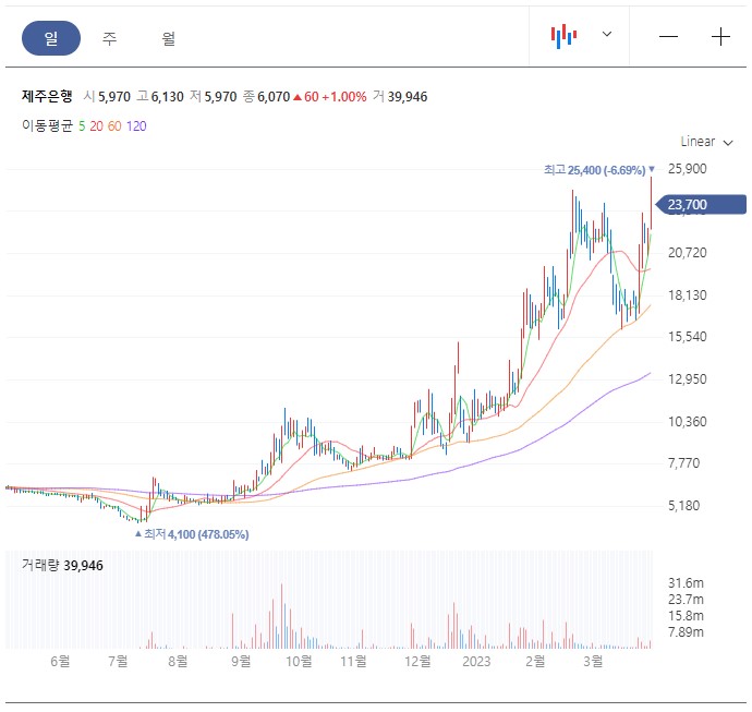 제주은행 주가 상승