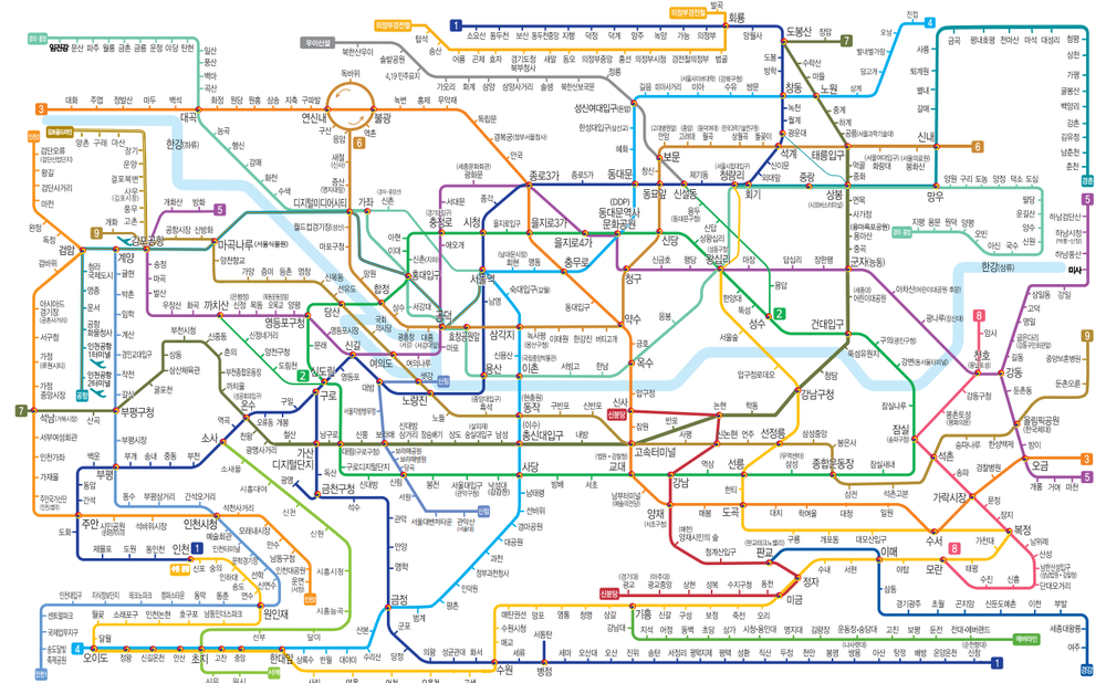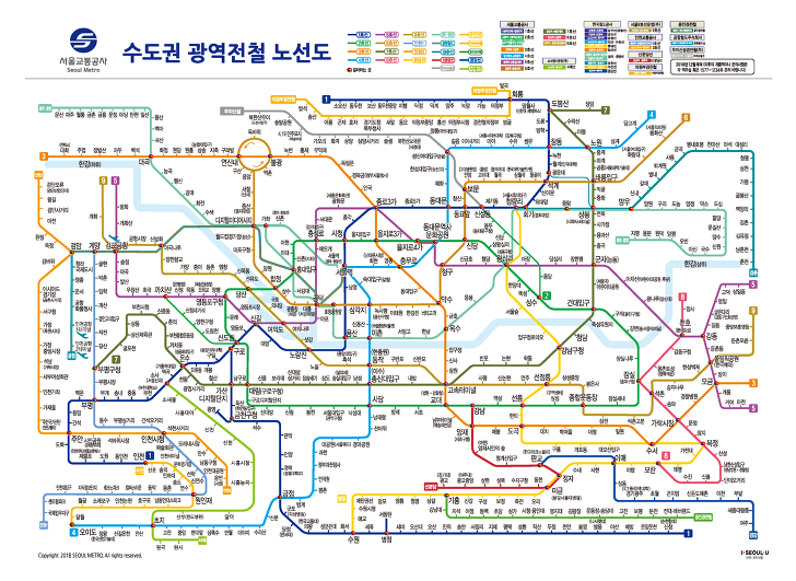 한국에서는 서울과 수도권 지역에 많이 몰려있는 지하철의 구조이라고 합니다. 하지만 환승이 편리하며, 서울 지하철 노선도도 가능한 깔끔하게 색상별 로 판별되어 있어요. 또한 스마트폰에서 지하철 연관 모바일 어플을 이용한다면, 빠른 환승을 위한 칸과 내리는 문 번호까지 알려주므로 이것만 보더라도 한국 지하철이 상당히 잘 짜여져 있다고 생각돼요.
