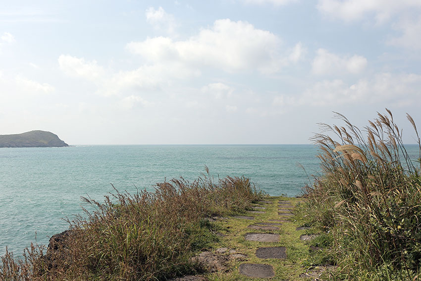 생이기정은 제주어로 새를 뜻하는 ‘생이’와 절벽을 뜻하는 ‘기정’이 합쳐진 말이라고요. 새가 날아다니는 절벽길이라는 뜻인데요, 이곳은 용암이 굳어진 기암절벽길로 바람이 부는 방향에 따라 달라지는 억새물결과 절벽 옆에서 부서지는 파도소리가 아름다운 조화를 보여주는 곳이라고요.