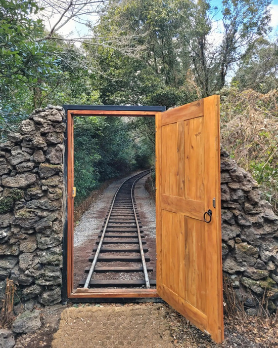 문을 지나면 어딘가 다른 차원으로 갈 것만 같은 신령로움을 뽐내며 요즘 제주도 가볼만한 곳 10곳 핫플레이스로 위치한 산양 곶자왈 4월 제주도 여행코스 2박 3일로 꼭 방문해보시길 추천합니다. 기찻길 포인트는 입구에서 넉넉하게 걸어가야 있고 달구지길이라는 표지판이 있을 때 왼쪽으로 꺾으면 찾을 수 있겠습니다.