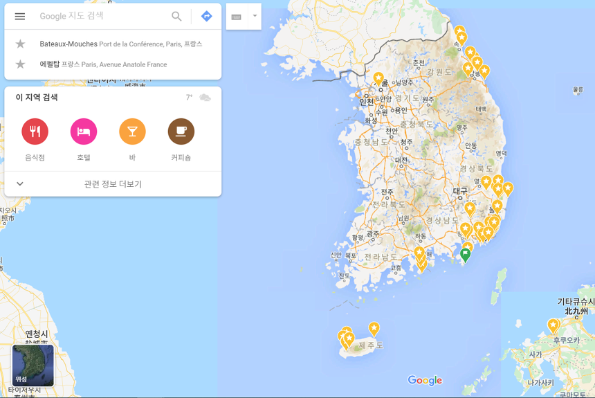 크롬에서 구글로 지도검색을 하다가 보면 쉽게 들어갈 수 있고요. 지도를 보시면 확대도 간편하게 할 수 있기도하고 갖가지 기능이 있다는데 프라이빗하게 맘에 드는 기능은 지역별 명소를 이미지로 지도내에서 간편하게 체크해볼 수 있는 것 같아요. 구글 지도에서 오른쪽 아래단에 작은 이미지 모양을 선택하게되면 현재 보고 있는 지도 내의 명소를 찾아볼 수 있습니다.