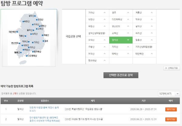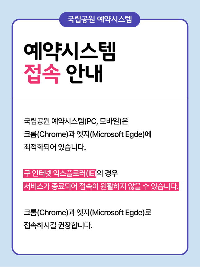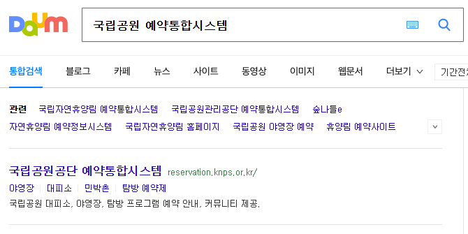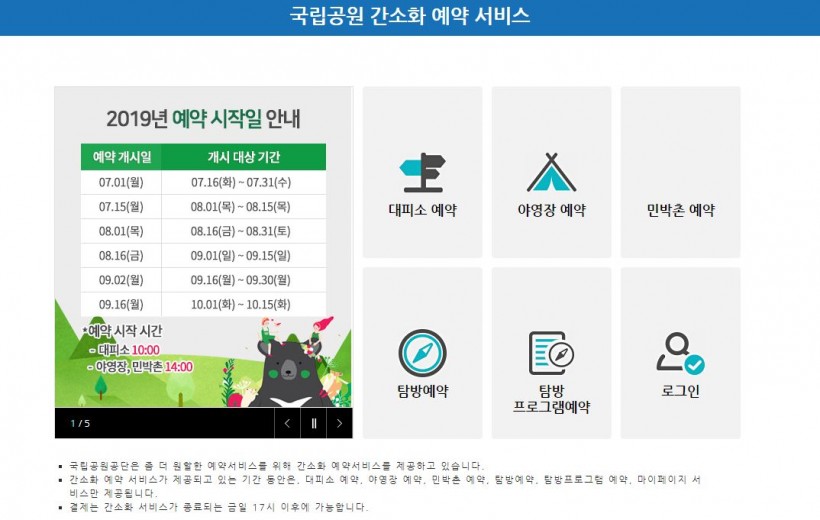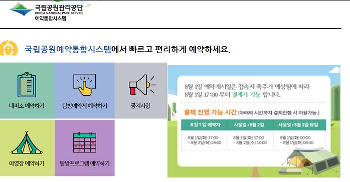국립공원 관리공단 예약통합시스템 이용시 주의사항
