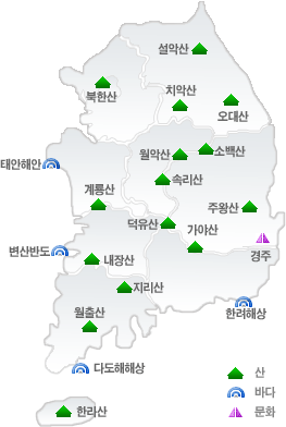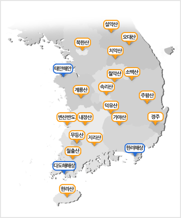 ☞ 생태탐방원(8) : 가야산, 내장산, 무등산, 북한산, 설악산, 소백산, 지리산, 한려해상