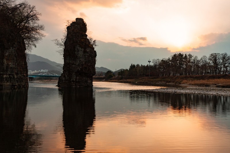울산 사람이라면 한번 정도 들어 본 울산의 명소 울산 8경중 같은 종류인범서읍 입암마을에 자리한 선바위이예요. 백룡이 살았다는 푸른 물속에 있는 기암괴석이예요.