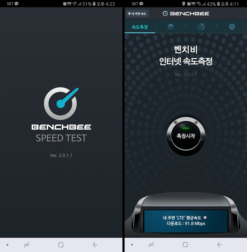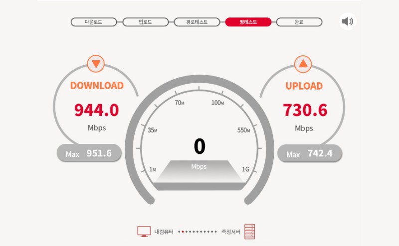 속도 테스트가 최초로 되면 음성 안내에 따라 인터넷 품질 측정 4단계가 순차적으로 진행되며, 대부분 단계가 진행이 완료되면 다운로드 속도, 업로드 속도, 응답 속도, 경로추적의 측정 항목의 내역을 바로 체크가 가능해요.